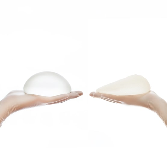 Saline implants are silicone shells that are filled with sterile saline. These can be pre-filled, or can be filled during the surgery after the shell has been inserted into its position. In a case of rupture, saline implants are very safe as they are just sterile saline solutions. Saline implants can show rippling on the implant edges, especially in thin patients. Silicone implants, on the other hand, are fully silicone; the outer shell is solid silicone whereas the inner part is filled with viscous silicone gel. These are often preferred as it gives a softer and more natural tissue feel than the saline implants. In a case of rupture, these implants need to be removed immediately. Silicone implants are less likely to cause a rippling effect.